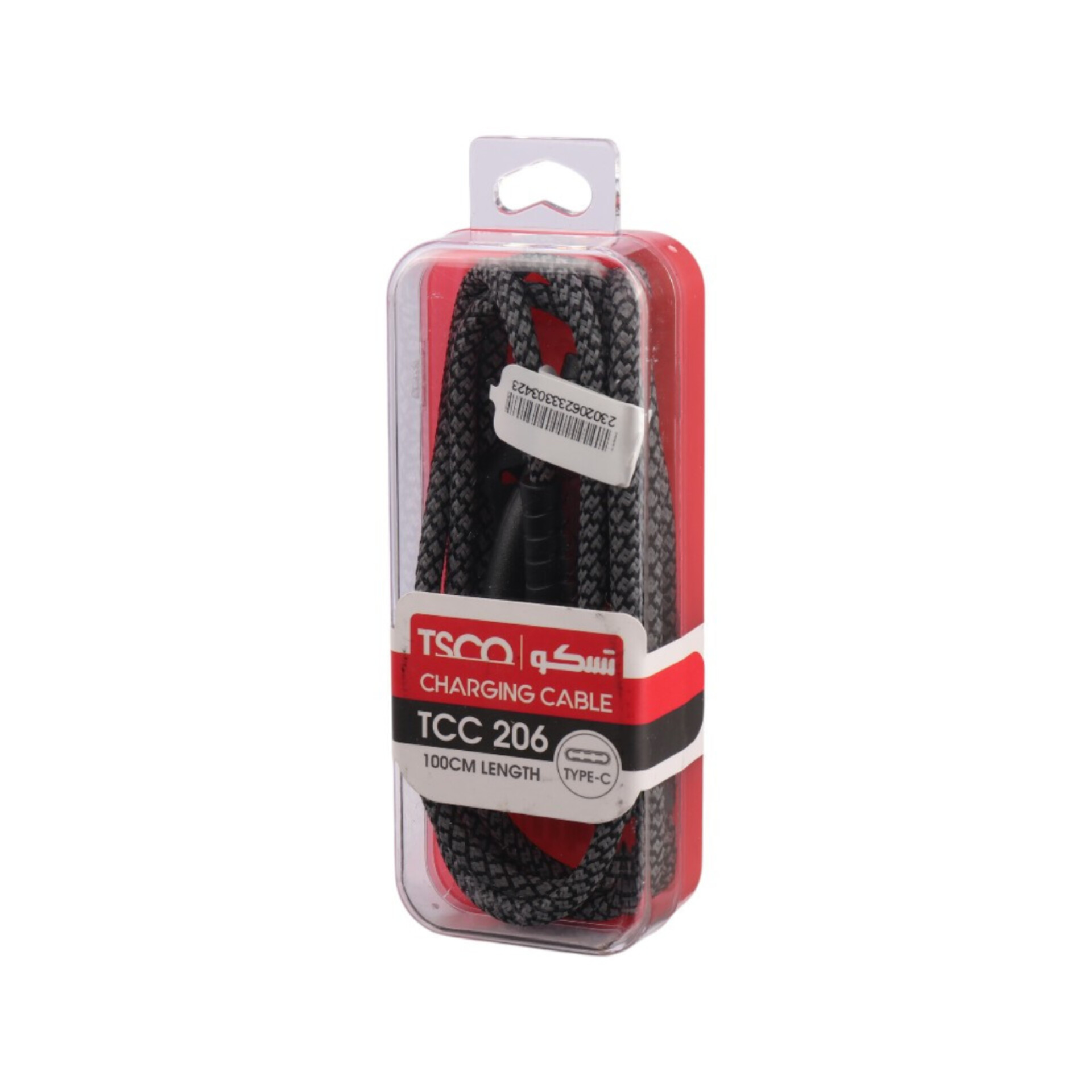 کابل TC C 206 برند تسکو 1 متر طول دارد و رشتههای مسی آن با استفاده از کنفی پوشانده شدهاند . این روکش مقاومت زیادی دارد و رشتههای مسی داخل کابل را در برابر قطعشدن براثر کشیدن ، خم شدن و گره خوردن مقاوم کرده است؛ کانکتورهای به کاررفته در این کابل TC C 206 بسیار مقاوم هستند. در یک سمت این کابل یک کانکتور Type C و در سمت دیگر آن یک کانکتور USB برای اتصال به شارژر و کامپیوتر برای انتقال اطلاعات وجود دارد. شما میتوانید از کابل TC C 206 برای شارژ و انتقال اطلاعات میان دستگاههای مختلف به راحتی استفاده کنید. این کابل حالت فنری دارد و به شدت کاربردی می باشد.